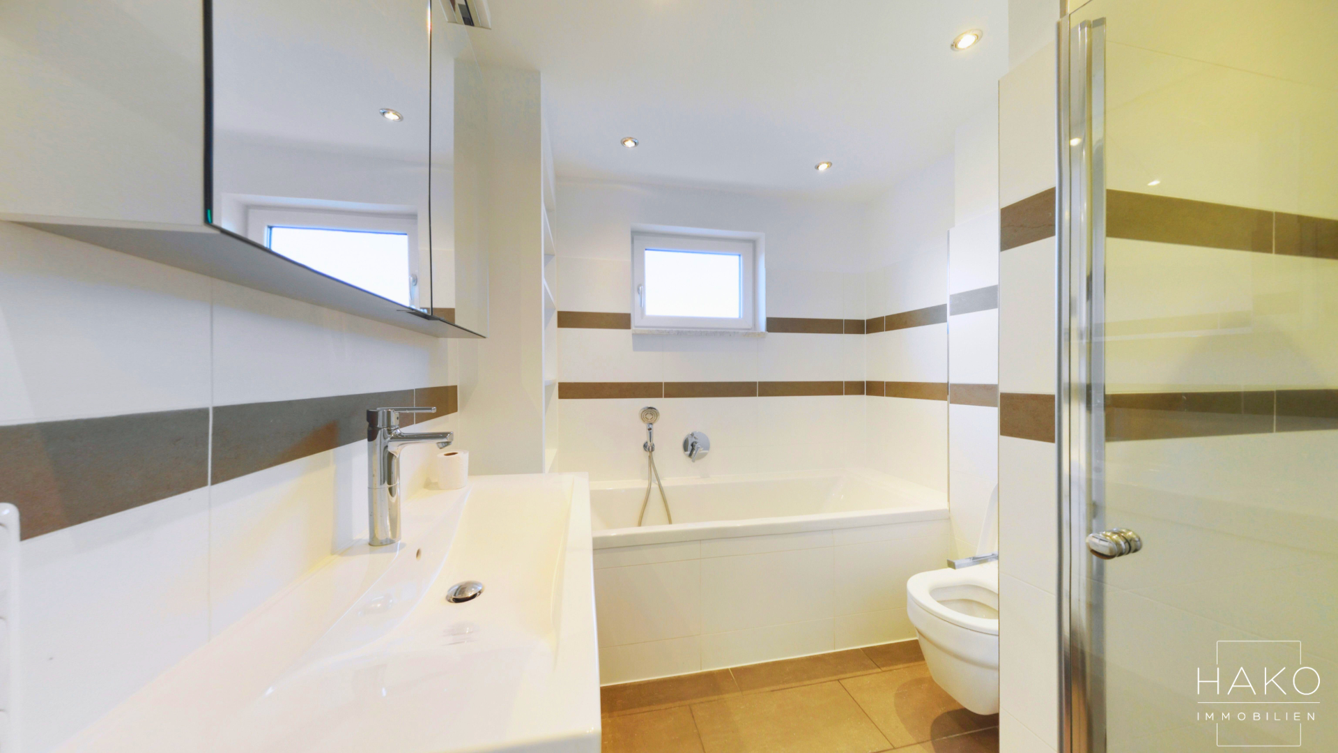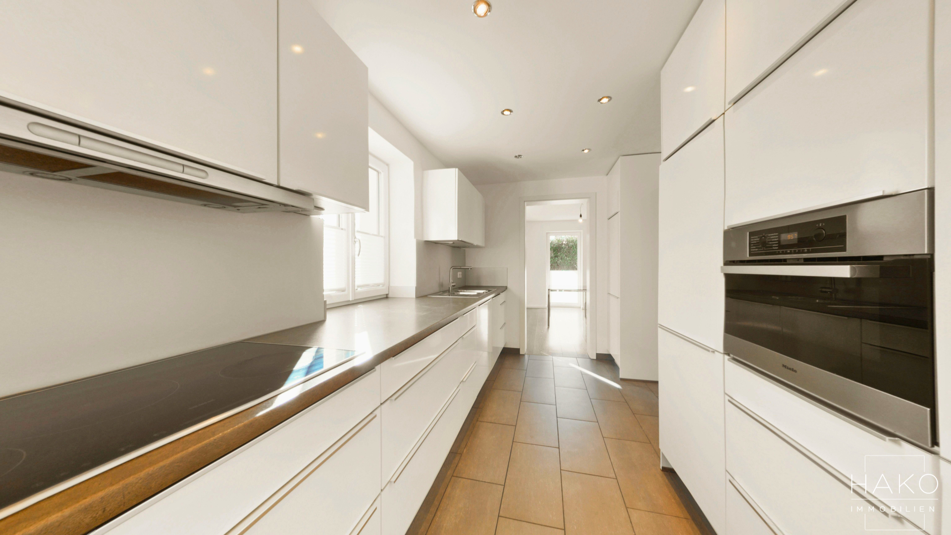Die hochwertige Einbauküche überzeugt mit erstklassigen Materialien und ist funktional wie ästhetisch ein echtes Highlight. Zwei gut geschnittene Schlafzimmer sowie ein vollwertige Badezimmer und ein Duschbad bieten maximalen Komfort für die ganze Familie.
