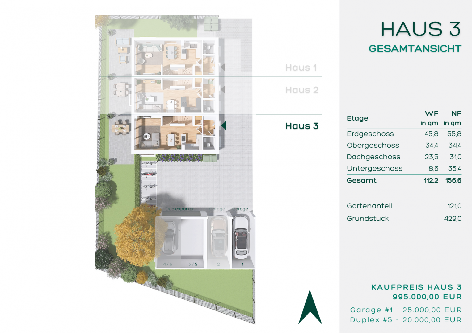 Das Reiheneckhaus überzeugt mit einer durchdachten Raumgestaltung über vier Ebenen und bietet ca. 112 m² Wohnfläche sowie eine Gesamtnutzfläche von ca. 157 m². Hochwertige Ausstattung und durchdachte Architektur garantieren modernen Wohnkomfort. Eine Fußbodenheizung sorgt für angenehme Wärme, während die kontrollierte Wohnraumbelüftung stets frische Luft und ein gesundes Raumklima schafft.