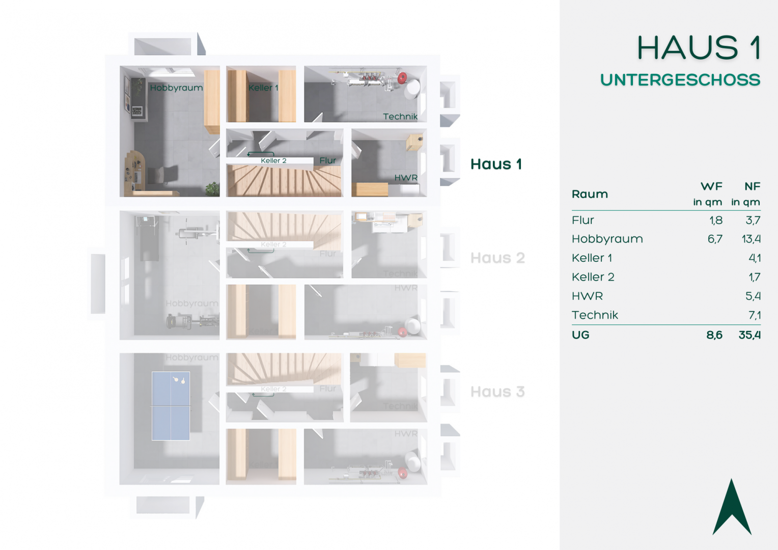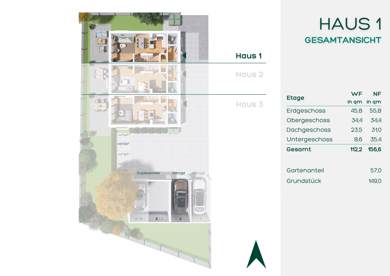 Das Reiheneckhaus überzeugt mit einer durchdachten Raumgestaltung über vier Ebenen und bietet ca. 112 m² Wohnfläche sowie eine Gesamtnutzfläche von ca. 157 m². Hochwertige Ausstattung und durchdachte Architektur garantieren modernen Wohnkomfort. Eine Fußbodenheizung sorgt für angenehme Wärme, während die kontrollierte Wohnraumbelüftung stets frische Luft und ein gesundes Raumklima schafft.