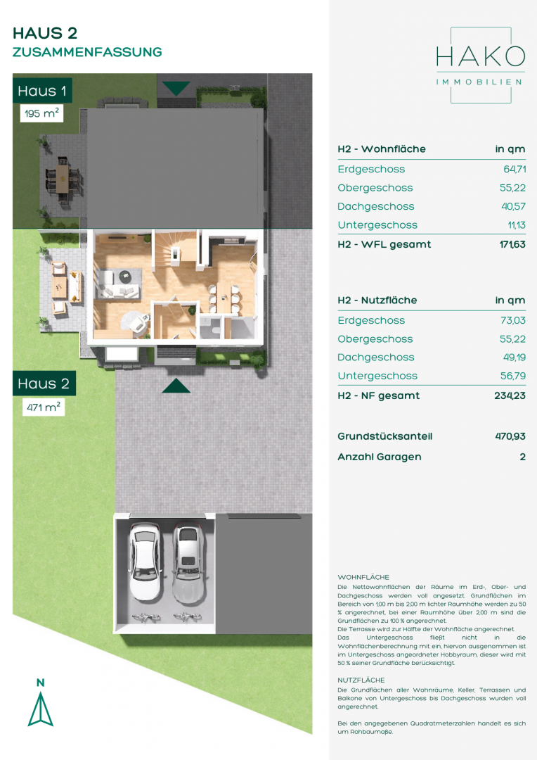 Zwei Garagenstellplätze für insgesamt 30.000,00 € stehen Ihnen in Ihrem neuen Zuhause selbstverständlich ebenfalls zur Verfügung – eine komplette Immobilie, die Ihnen alles bietet, was Sie für Ihr neues Leben brauchen.