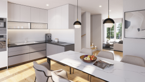 Die Küche ist ein zentraler Ort des täglichen Lebens in Ihrem neuen Heim – ein Ort der Zusammenkunft, des Genusses und der Entspannung. Genießen Sie die wunderbare Atmosphäre, die Ihnen die offene Küche mit Essbereich und grandiosen Ausblicken auf den angrenzenden Garten bieten kann.