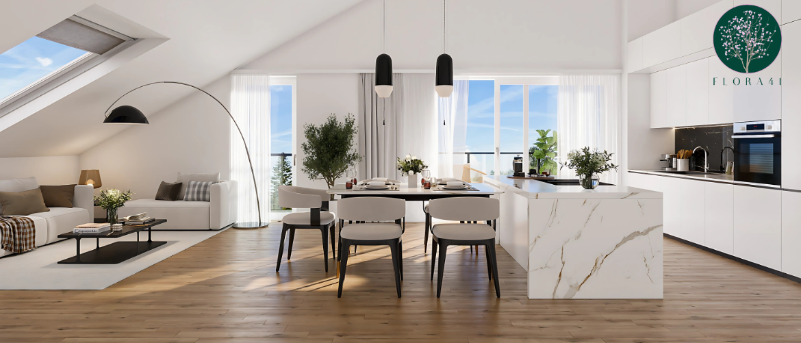 + Stilvolle Parkettböden in Dielenoptik in allen Wohnräumen